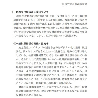 自治労本部の森下総合政治政策局長、氷室政策局長からも「地方交付税法改正および地財計画について」のお考えをヒアリングしました。一般再現総額の確保、拡充や、給与関係費の十分な確保をお訴えです。65.1兆円の地方一般財源総額を前年比1,500億円増で確保していますが、デジタル化推進、脱炭素化、リスキリングなど地方の仕事も増大しているそうです。さらに防衛費増大の懸念も来年度以降、地方財政に少なからず影響するのではないか、憂慮しますので、地方財政の健全化を目指してまいりたいと思います。